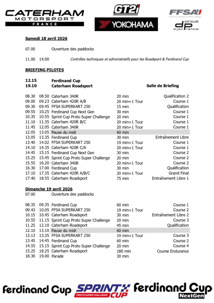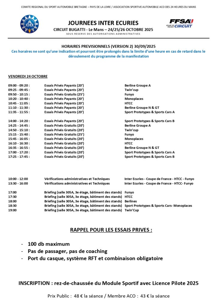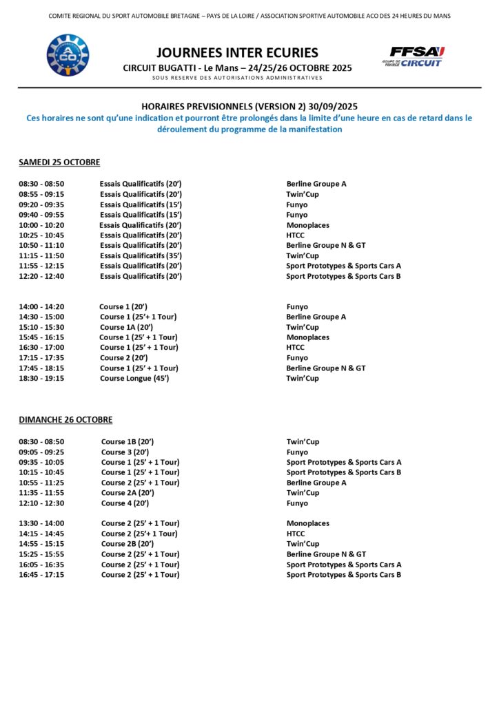 HORAIRES PREVISIONNELS DU WEEK-END